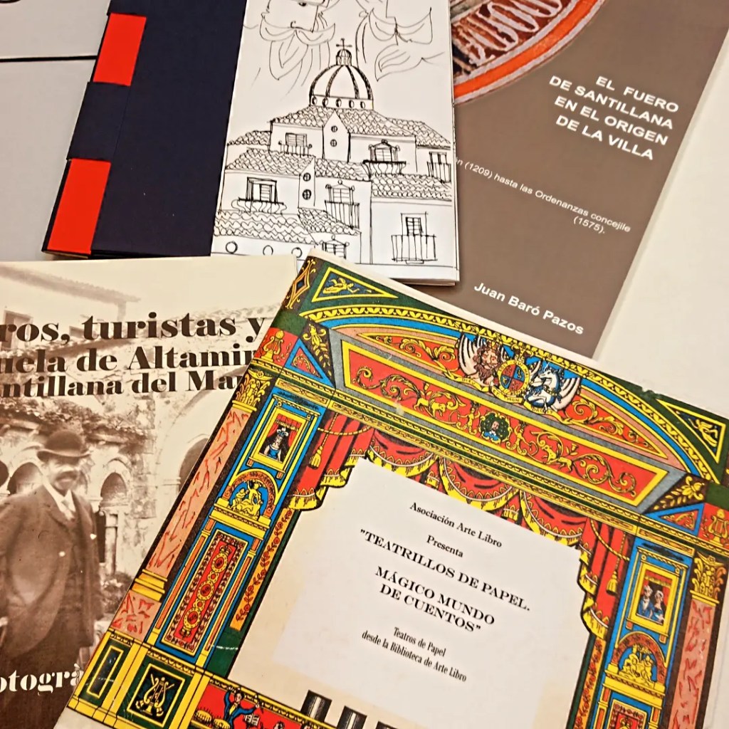 Nos gusta pensar en ellos, como pequeños ensayos, cada vez más complejos… “Santillana del Mar, y Altamira en los Libros”, “Santillana del Mar 800 años de Historia. Las Fuentes Documentales” editado en ocasión de la exposición conmemorativa del 800 aniversario del Fuero de Santillana del Mar, la primera exposición donde se reunían los más antiguos documentos sobre la villa. Y luego las exposiciones fotográficas en colaboración con el CDIS de Santander y el Museo de Altamira, sobre la Escuela de Altamira, dos exposiciones “Viajeros, turistas y la Escuela de Altamira” y “Altamira La Capilla Sixtina del Arte antiguo”.